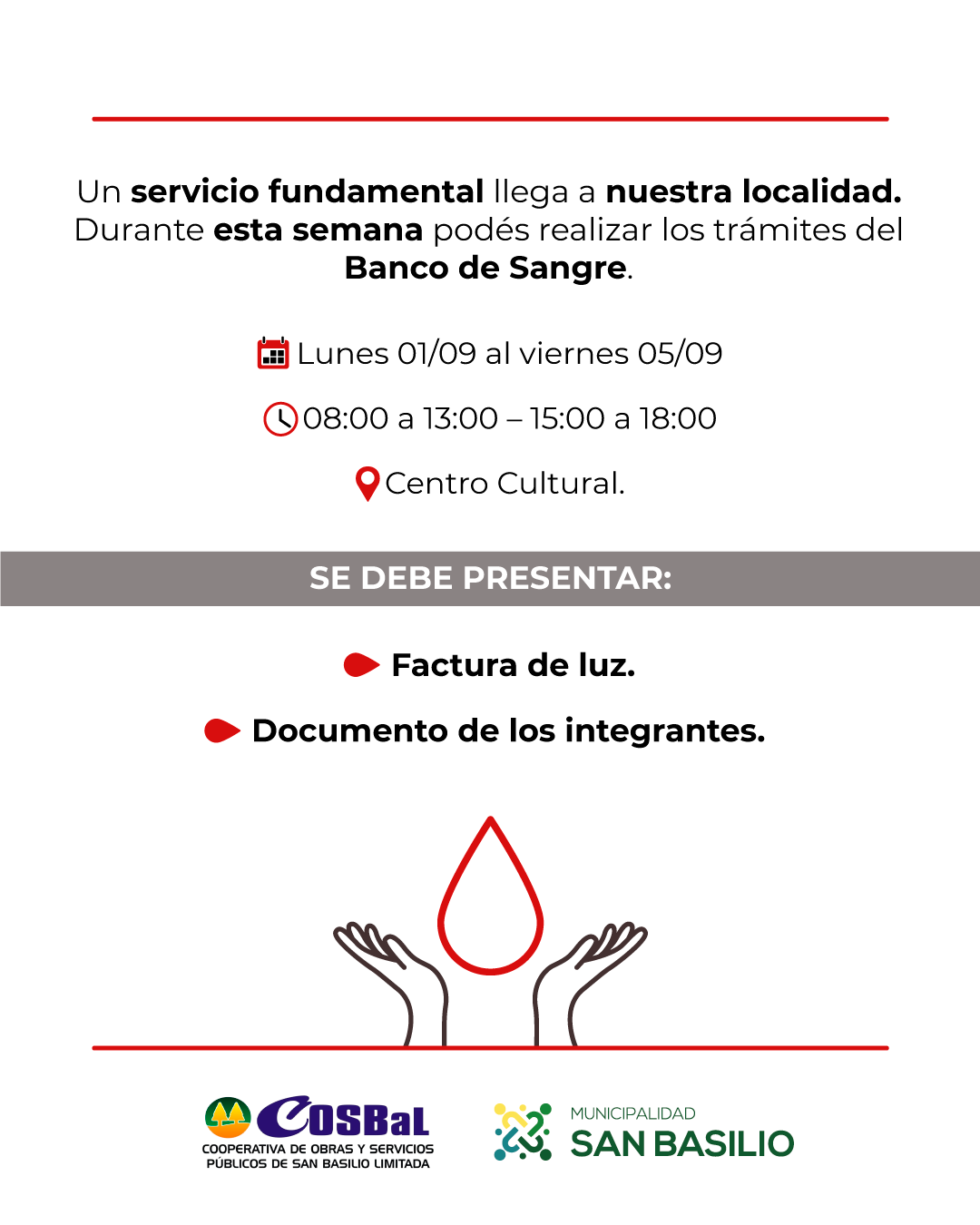 En San Basilio contamos con la presencia del Banco de Sangre, una oportunidad muy importante para toda la comunidad.